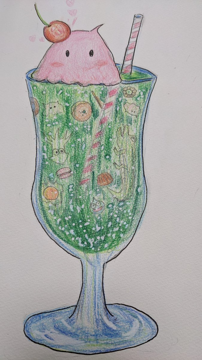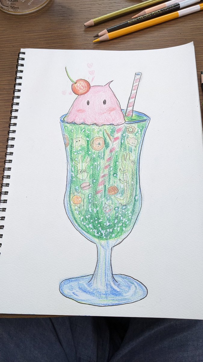今日は暑くなりそうですね〜 クリームソーダのイラストを再掲載します。少しでも涼しくなってもらえたら幸いです。 #イラスト #イラスト好きと繋がりたい #絵描きさんと繋がりたい #色鉛筆 #アナログ画 #クリームソーダ