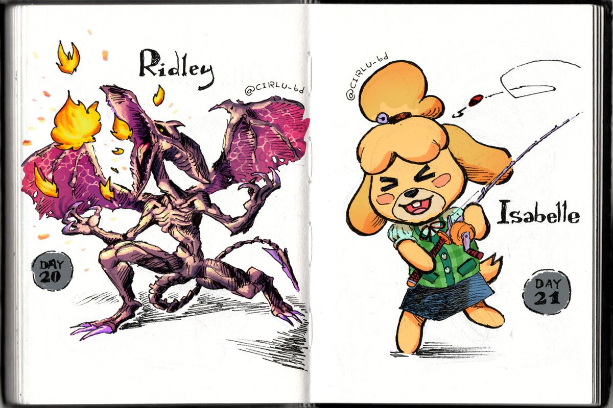 Inktober smash ultimate Days 20 & 21 : Ridley & Isabelle ! #inktober2020 #SmashBrosUltimate (I definitively need to make stickers or shirts out of some of these !)