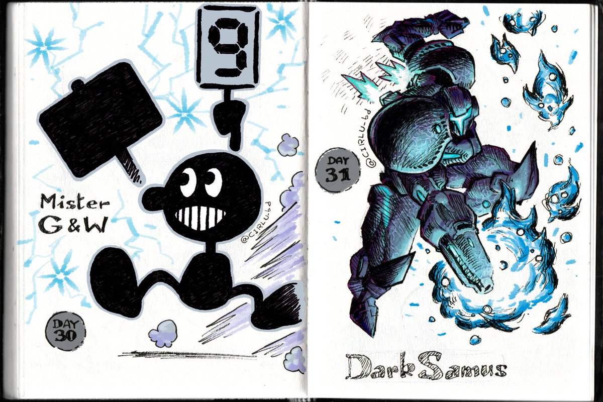 Inktober smash ultimate Days 30 & 31 : Mister Game & Watch + Dark Samus ! #inktober2020 #SmashBrosUltimate