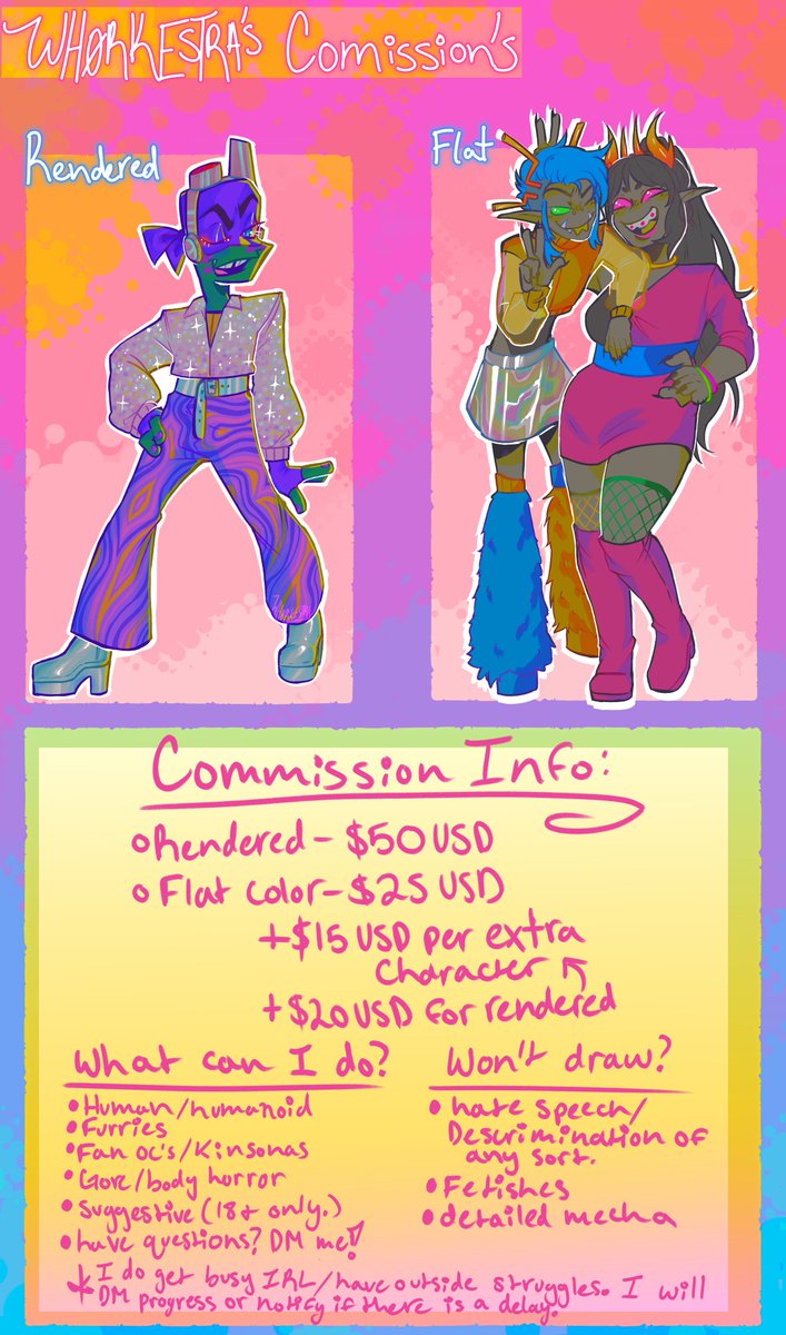 Alright, after sitting down, timing myself, and doing the math, I've come up with a comm sheet for a new type of comm. So without further adieu, dm me if you're interested, please keep in mind it may take a while. Paypal is preferred. #digitalartwork #commissionsopen #rottmnt #OC