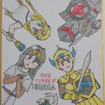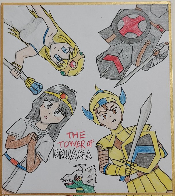 ギル(って言うとキカイダーでてくる)とカイとイシターとブラックナイトとクオックス描きました! レトロゲームキャラ描くの楽しい~!! カイ、本当に昭和デザインかと思う程良いデザイン!かわいい!! #ドルアーガの塔 #カイの冒険 #レトロゲー女の子を今描く