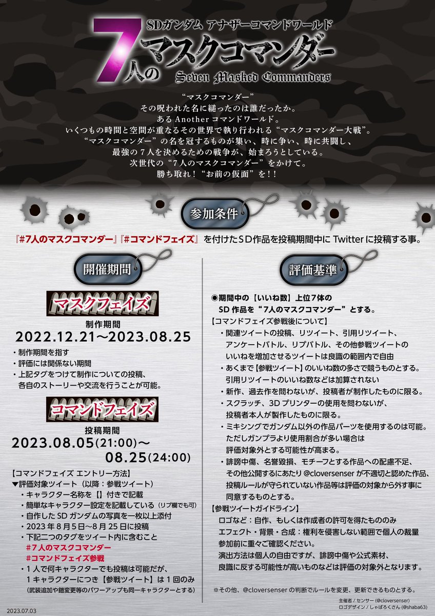 「仮面を脱ぐ準備は整ったか?」 さあ、長いトランス状態から醒める時だ。 #コマンドフェイズ が【8月5日21時】より始まる。 選ばれし7人を目指すのであれば、参戦投稿は必ずルールに則って投稿せよ!! さあ、最も熱い夏を迎えよう!!! #7人のマスクマンダー