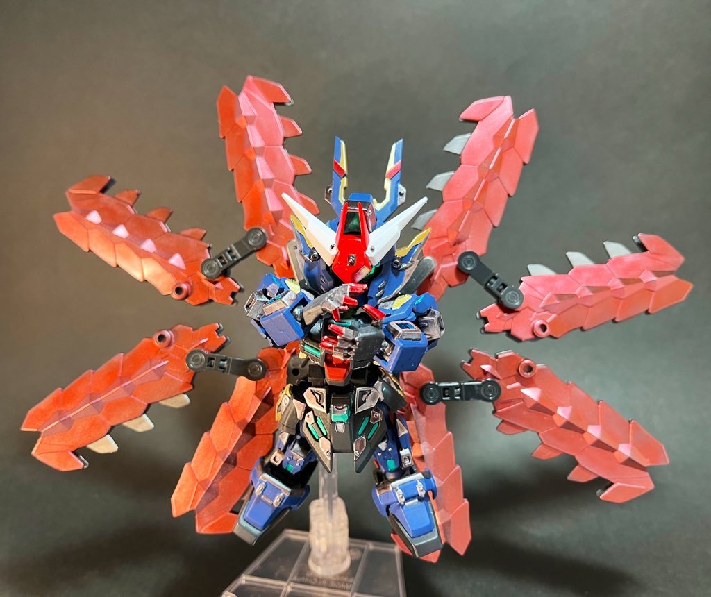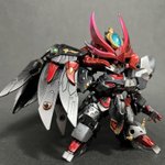 途中写真! 最初はトゥルブレンツモチーフのみで、仮面もオリジナルでしたが、トワスフィ内でレグナントとデュビアスアルケーをお出しされて結果突貫でフューラー要素を足しました笑 とにかくデカくて撮影ブースに入りきらないのがネックです! #7人のマスクコマンダー #俺SD作ってるぜ