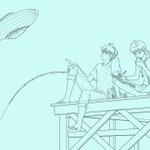 6 55 【静かの海】 ただどこまでも、波の音。 (ああ、ずーっとこうしていたい…) 「魚…かかってない?」 #イラスト #創作男子 #飛行船 #海 #夏 22/08/12 13:01