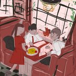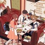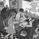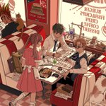 つぎのです。ファミレスは楽しい🍔🍽☕️ #イラスト #ラフ #下書き
