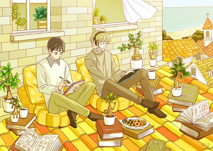2 15 【空中図書館】 ぼーっとするのも、読む聞く書くもご自由に おやつを食べても良いですよ #イラスト #創作男子 #マンドラゴラ #屋根 23/01/11 15:24