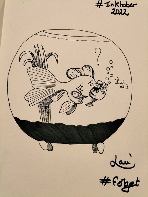 Inktober jours 12 : Oublier Un poisson rouge dans son bocal à oublier que la fleur est sur sa tête 👀 #inktober #inktober2022 #inktoberday12 #goldfish #fish #animals #draw #drawing #drawingart #art #artwork #artist #artoftheday #artofinstagram #myart #blackandwhite #fabercastell