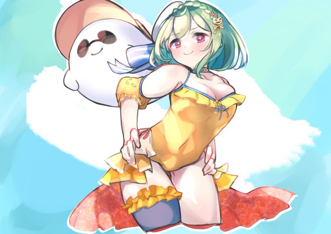 94 239 暑すぎなので再掲です ヘッダーにもなってるお気に入りドヤ水着ぺポちゃんです #フラワーナイトガールイラスト 22/07/23 22:56