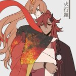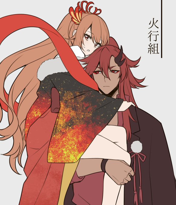 クソほど落書きなんですけど怪刀乱神の火行組、主の抱え方こうだな…になった(姫だっこするような紳士力が無)