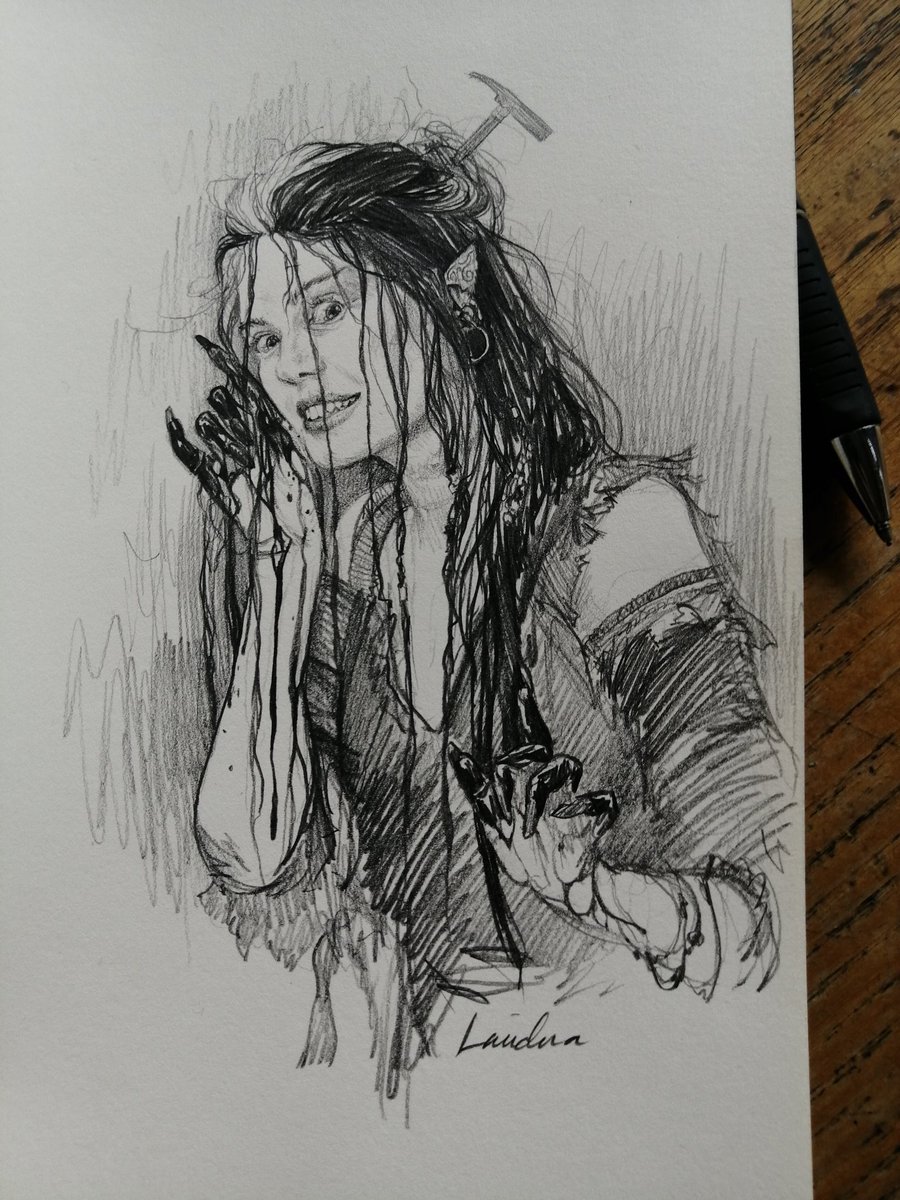 #criticalrolefanart down time sketch between the insects, of Laudna, aka @Marisha_Ray of @CriticalRole