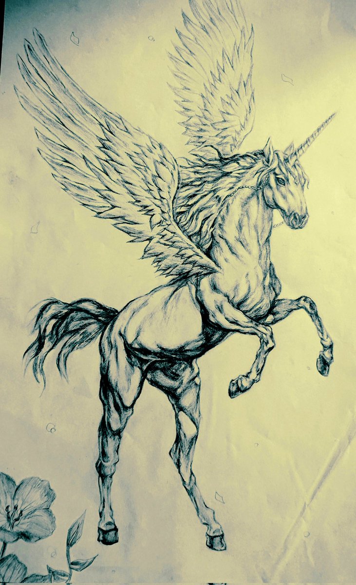 イラスト練習 資料探して、色々付け足して描いて見ました。 #イラスト #シャーペンイラスト #アナログイラスト #動物 #ユニコーン #馬