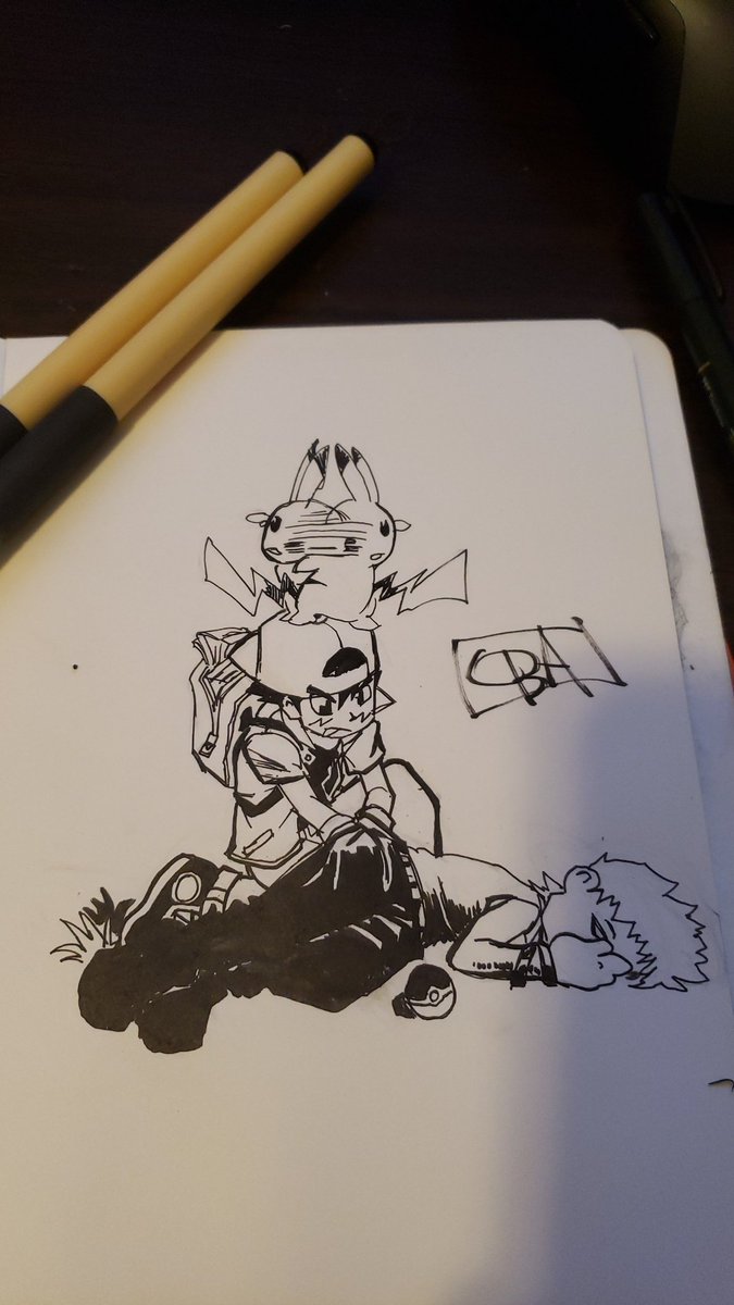 #inktober2021day21 #inktober2021 I remember when I was little and start #Ashketchum tried to throw hands with #mewtwo in #pokemon, that shit was #intense