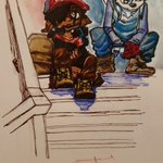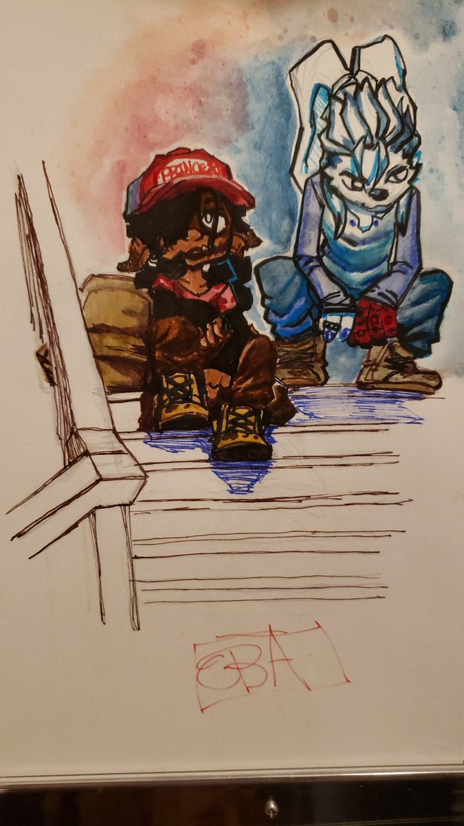 #inktober2021day25 #inktober2021 so I decided to #color this one cus I wanted to make this #drawingoftheday of my two favorite #OC Zaine and Johnny from the comic I'm making lol #originalcharacter #watercolor #mixedmedia