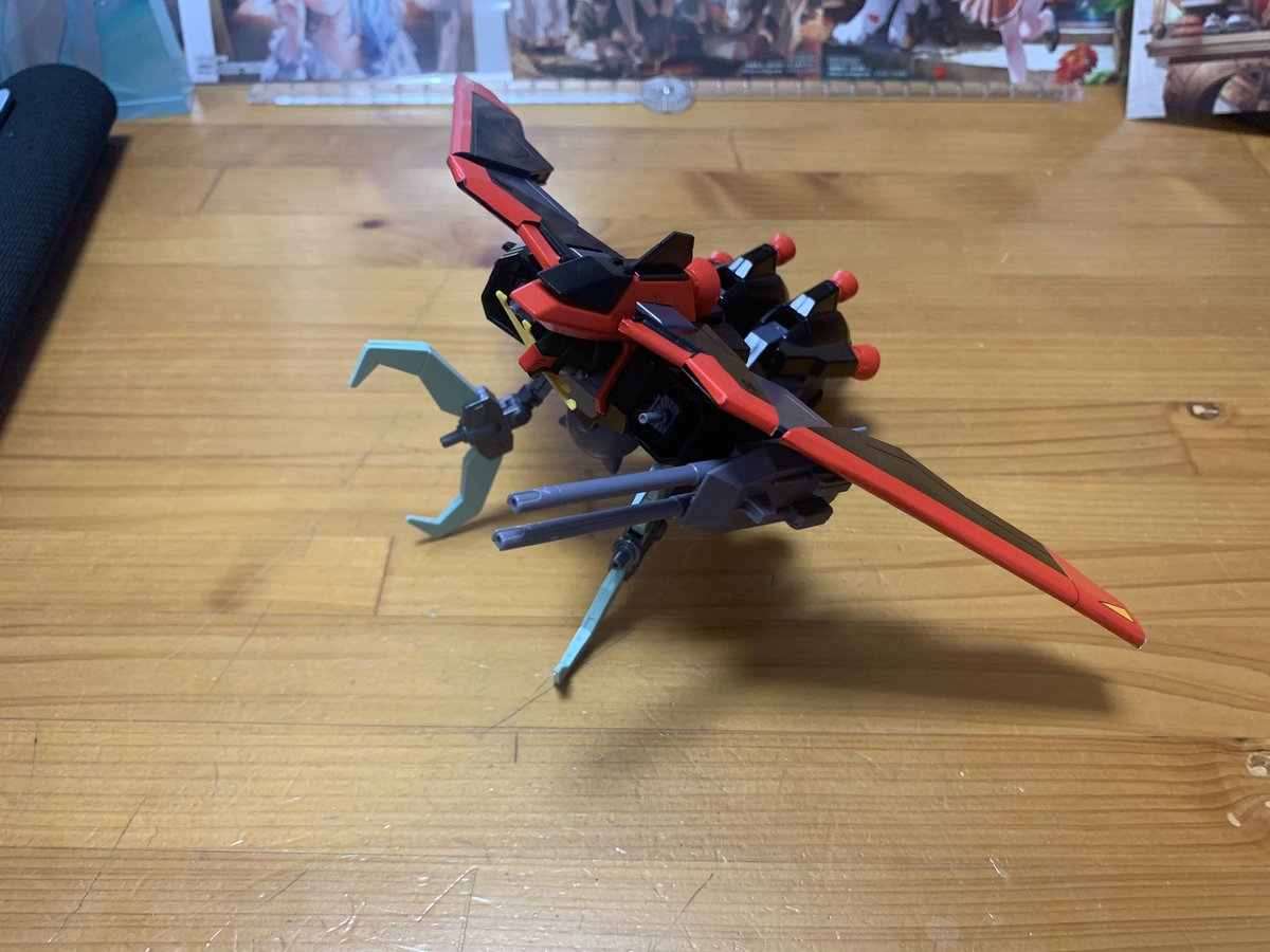 #ガンプラ #ガンプラ好きと繋がりたい #ガンプラの画像を貼るとRTされると聞いて ウェイブ・ライダー形態(スペース・ファイター形態)に変形!メガビームキャノンを機首に搭載し、火力面に申し分ないが劇中ではすぐに分離してしまうのがちょっと残念
