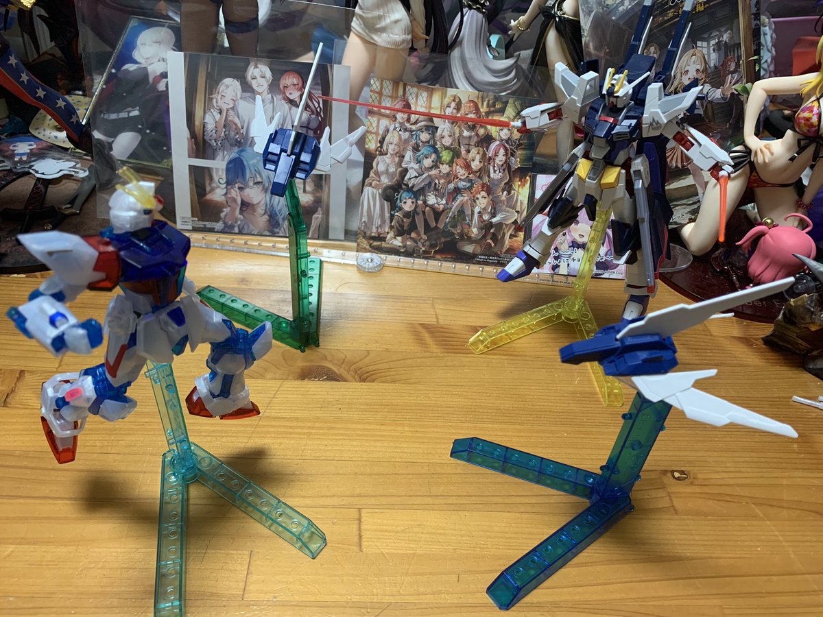 #ガンプラ #ガンプラの画像を貼るとRTされると聞いて #ガンプラ好きとつながりたい トライファイターズvsビルドバスターズ戦 火力のゴリ押しみたいな勝負だったけど、リ・ガズィをベースにした機体がZZガンダムをベースにした機体を討つっていう構図は良かったな〜