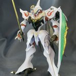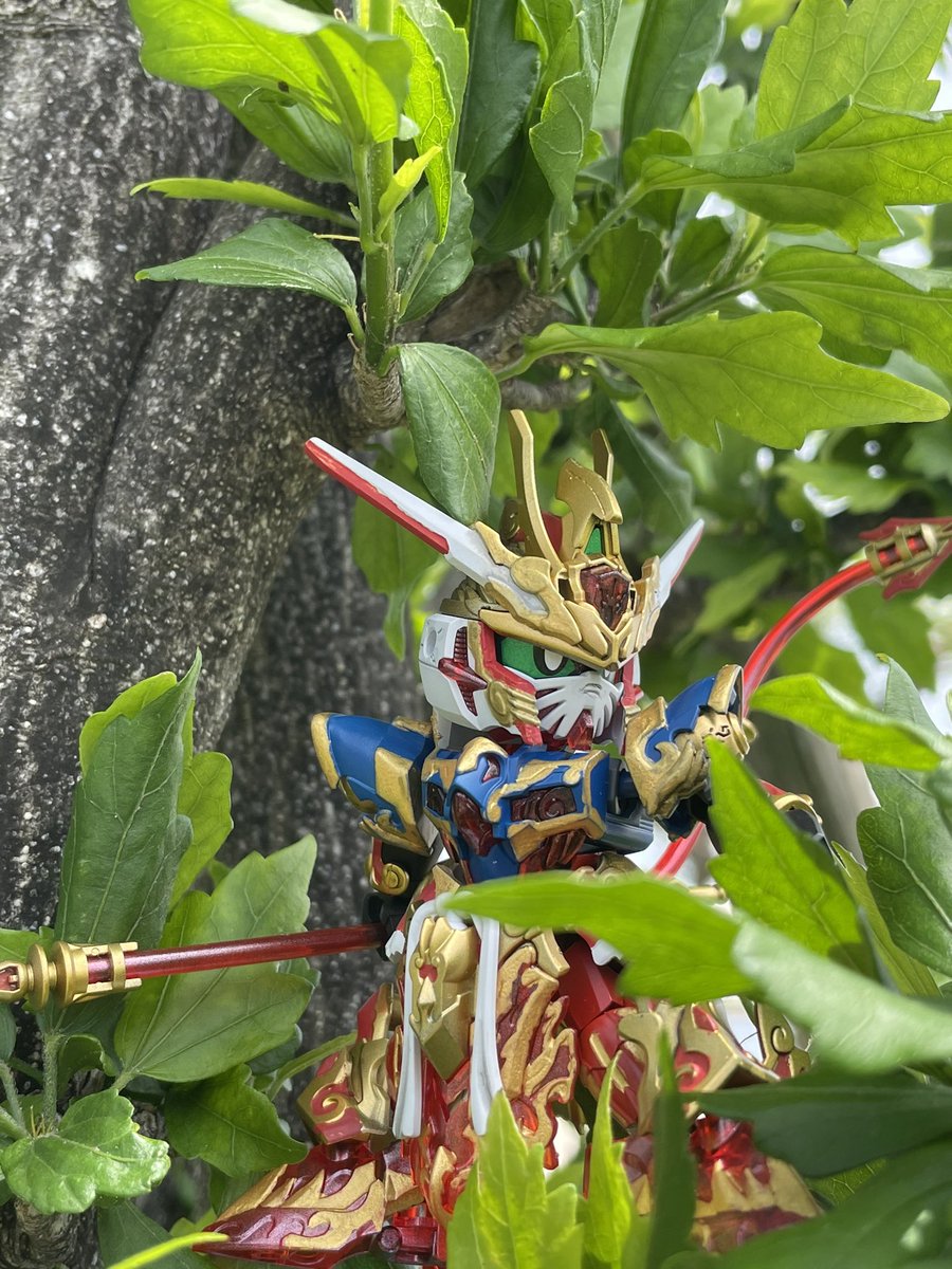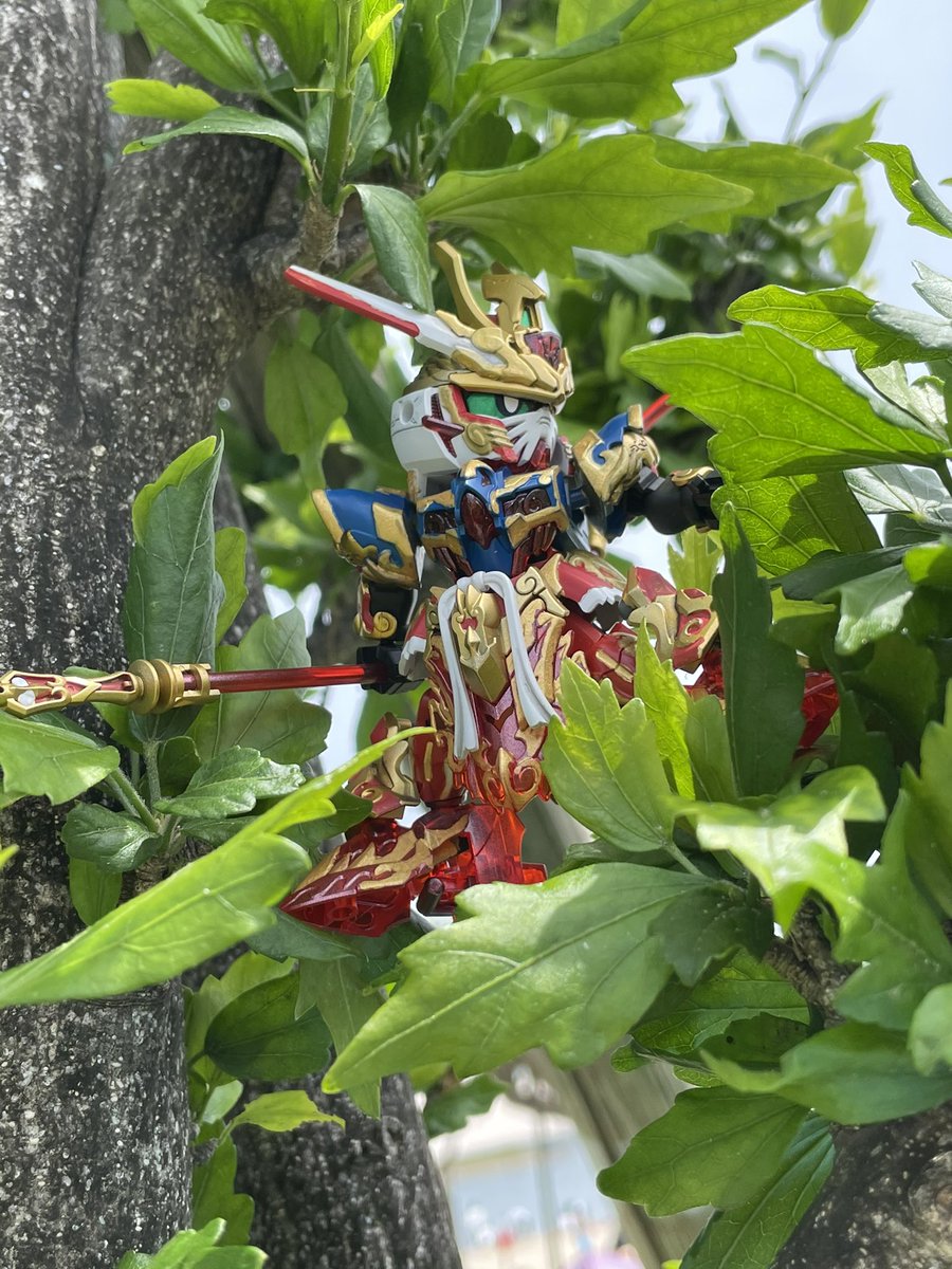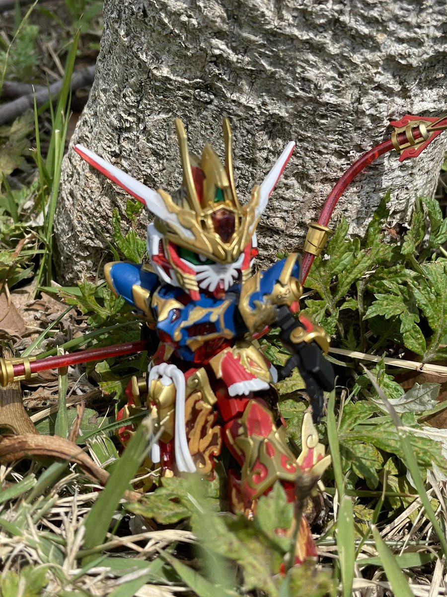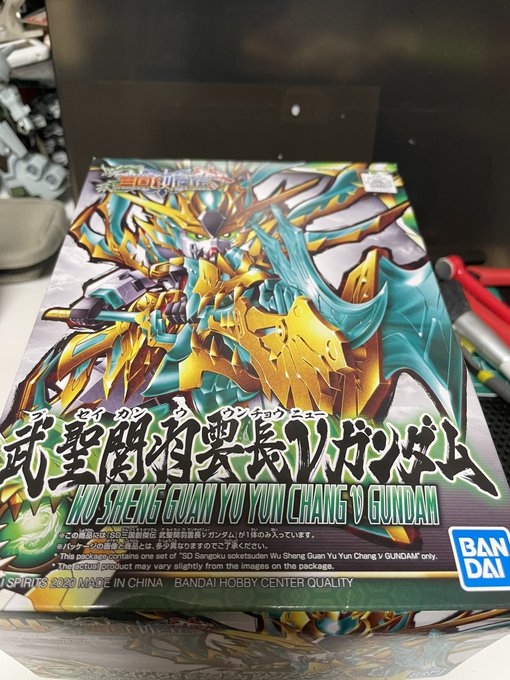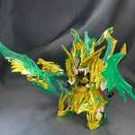 #三国創傑伝 の武聖関羽雲長νガンダム完成しました。 とにかく槍がカッコイイ! クリアパーツの縁取りをしただけでも大分見栄えは良くなったかな。 #ガンプラの画像貼るとRTされると聞いて #ガンプラ好きと繋がりたい #楽楽模型倶楽部