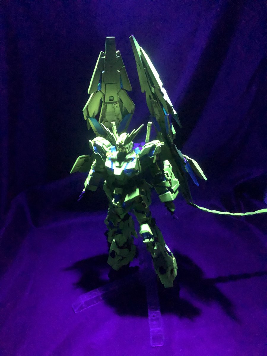 HGフェネクス完成しました。 今回は仮組みせずに、 パーツ切出し→塗装→組み立て という初の試みで製作しました。 劇中イメージを蛍光塗料で表現してみました。 #ガンプラの画像を貼るとRTされると聞いて #機動戦士ガンダムNT