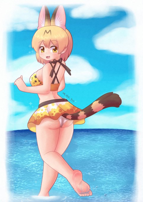 Serbal swimsuit done! 🐱👙 I tried to make a little more detailed background this time. But I'm not good at this -w- #けものフレンズ #けものフレンズ3 #KemonoFriends