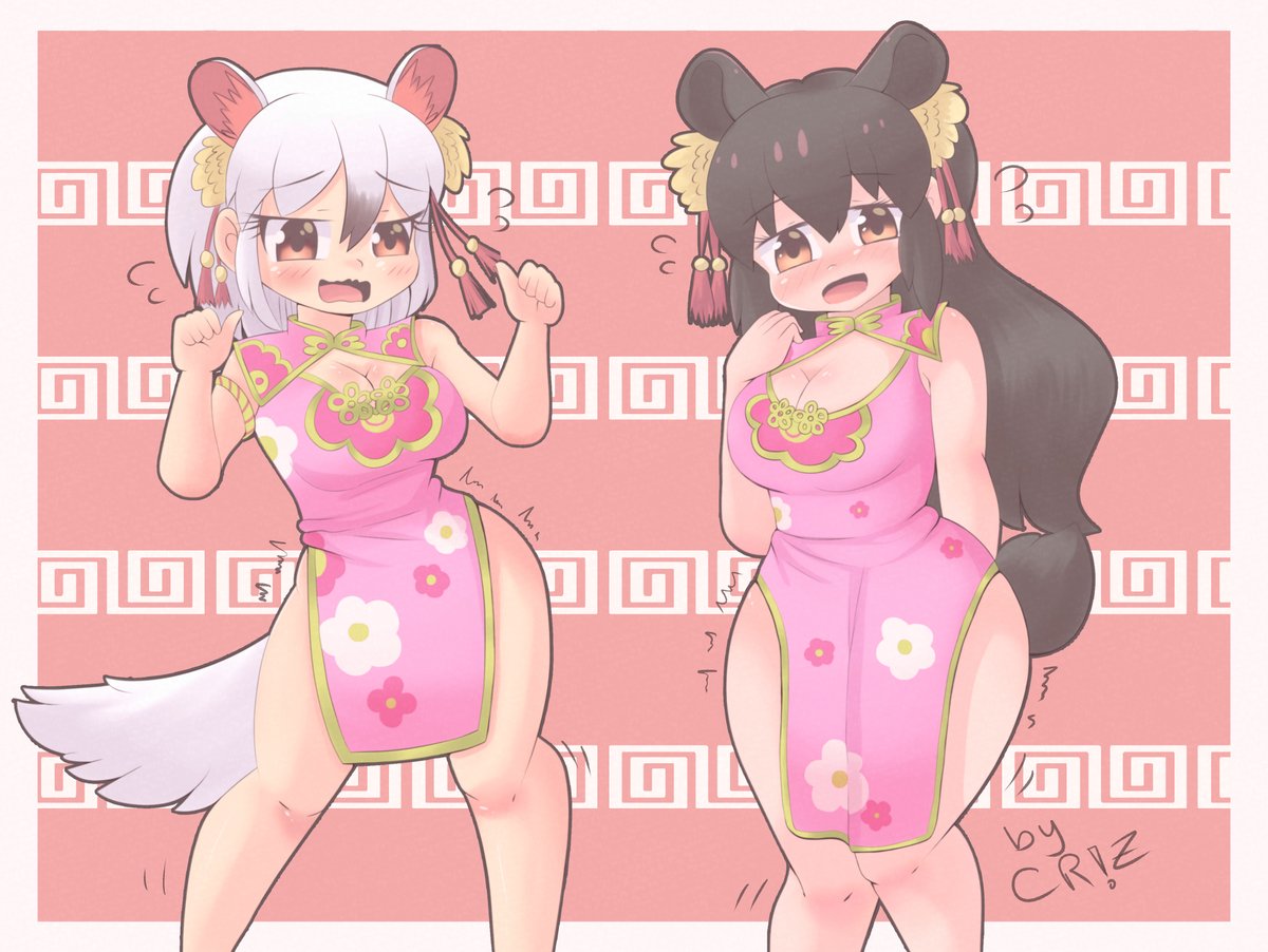 Quería dibujar a Southern Tamandua y Malayan Tapir con sus vestidos de china nwn #けものフレンズ #kemonofriends