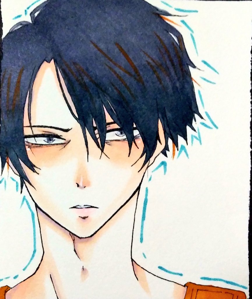 完璧たる手癖w 誰かって?リヴァイ兵長のつもりだよ!(_`・ω・)_バァン もう誰よ君wとりあえず色塗りしたかったから描きました…💦 #イラスト基地