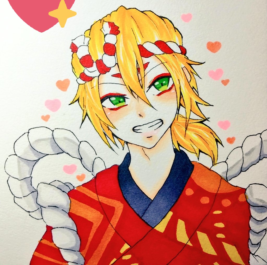 最近描いてたやつでジャンル別だけど鬼滅の刃の善逸と禰豆子ちゃん♪コンパスのアダム(アイドル版?)描いたったー♪( *¯ ꒳¯*) #鬼滅の刃イラスト #コンパスお絵描き