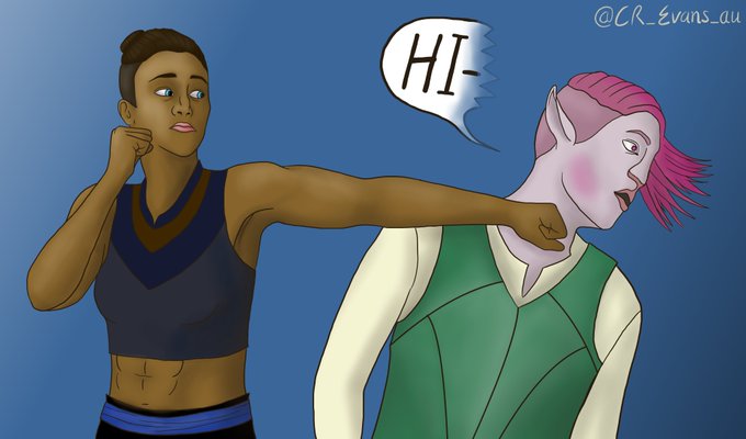Decided to draw something quick, like a punch to the face. #CriticalRole #criticalrolefanart #caduceusclay #caduceus #beau #beauregardlionette #c2e104 #mightynein #critrole
