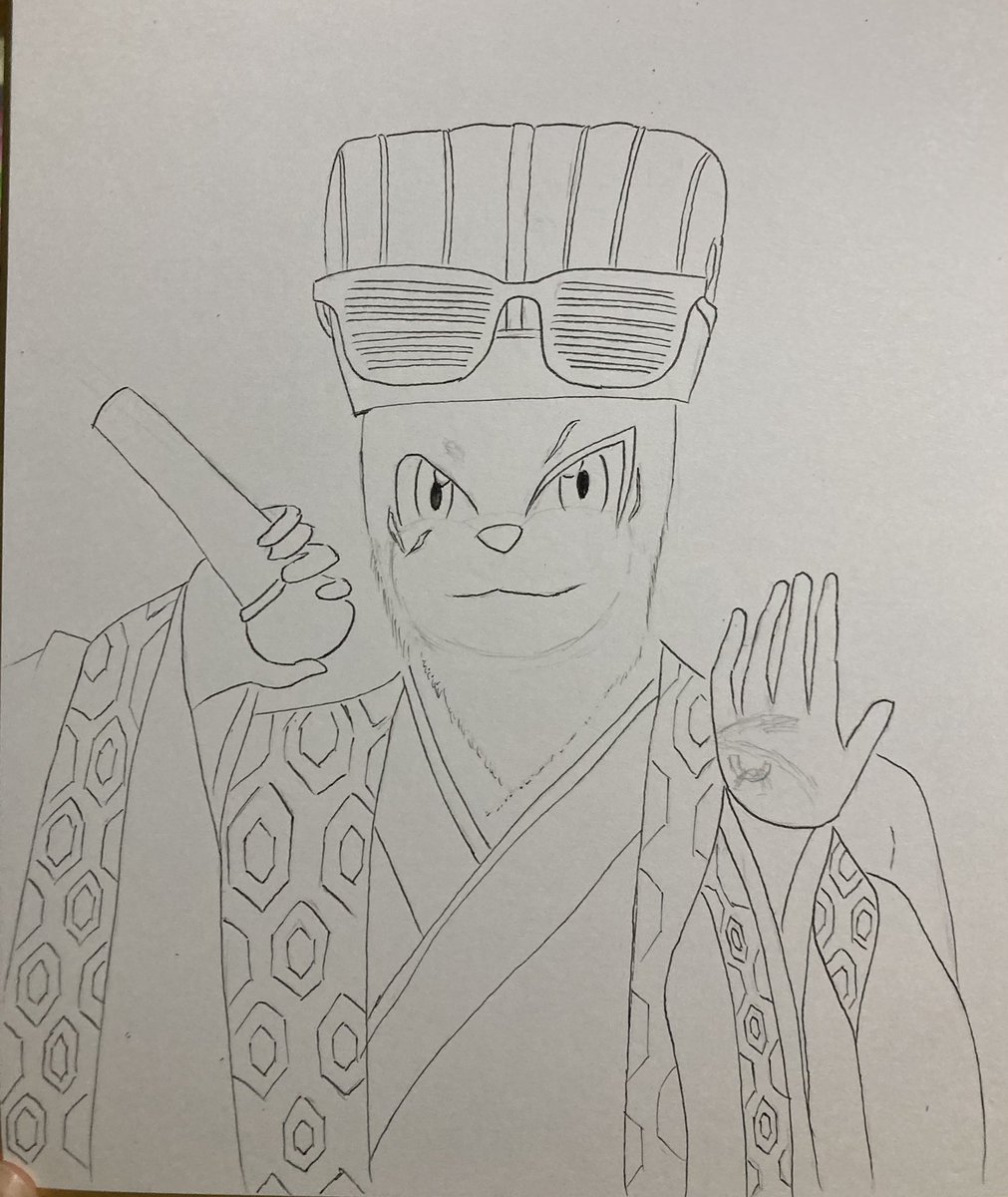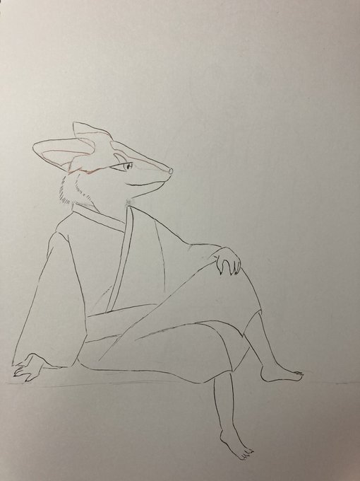 #キュウビ(@kyubi_999) #わんにゃんパーク #イラスト 急遽本日が #妖怪の日 ということでキュウビくんを描きました! また急ぎで描いたので色はまた後ほど! 和服着たいって言ってたからイラストで着せました!