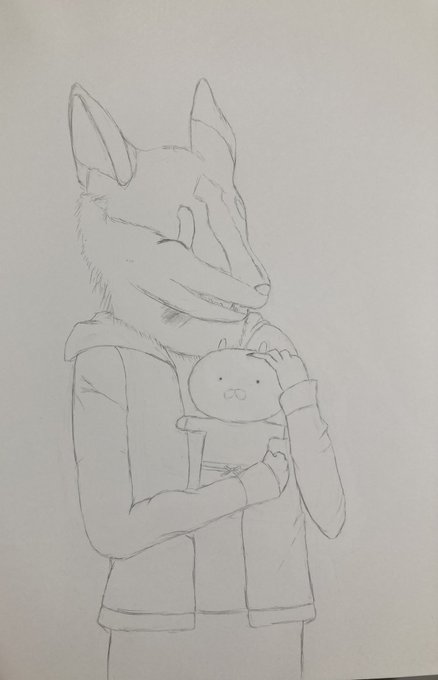 3 31 #キュウビ(@kyubi_999) #わんにゃんパーク #イラスト 最近の私生活でのキュウビくん! 抱いているうさまるは実際に渡したぬいぐるみです! ①線画 ②線画の清書 ③完成 22/08/29 21:59