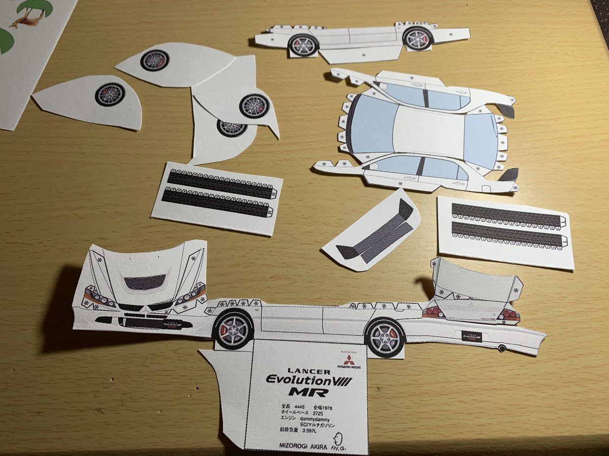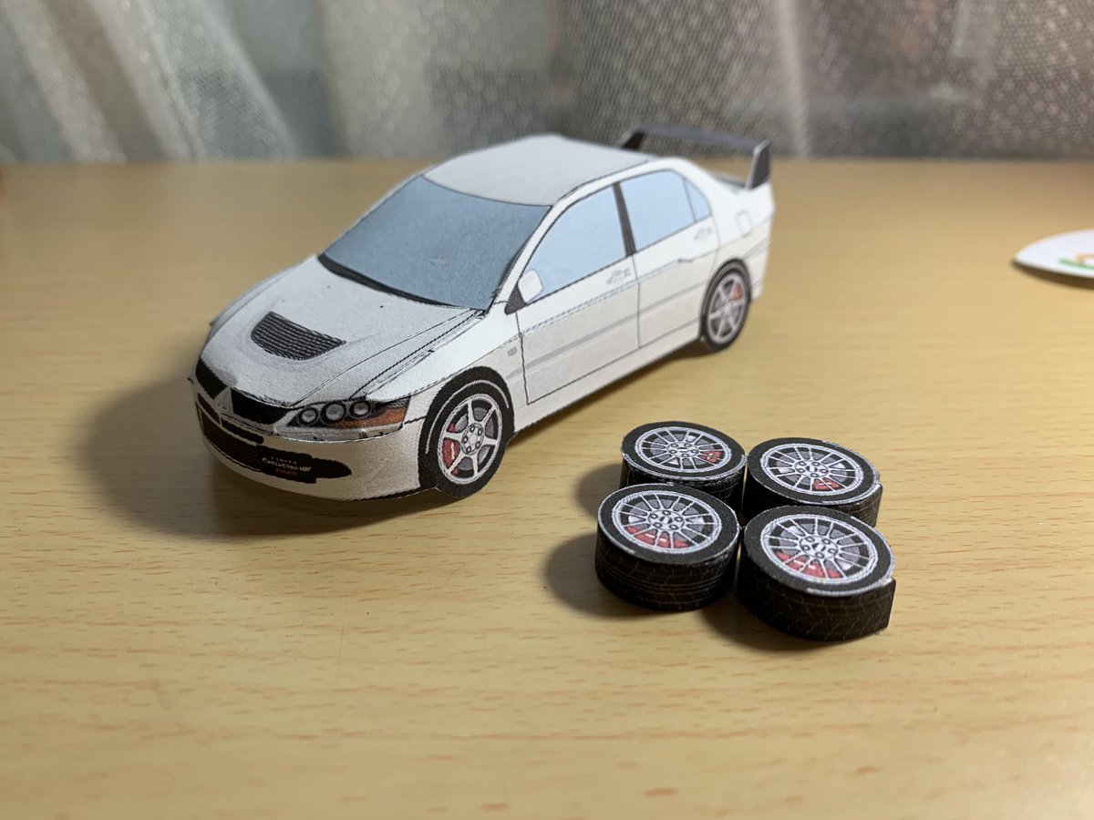 この間に引き続きBBSホイール仕様も製作してみましたよ👀 リアはどうすればそれっぽくなるんだろう😅 ペーパークラフト ランサーエボリューションワゴン 三菱のDで配布しても良いような🤔? #ペーパークラフト #ランエボ #ランサーエボリューションワゴン #エボワゴン #CT9W twitter.com/CT9W_EVO/sta…