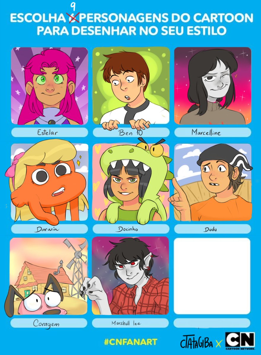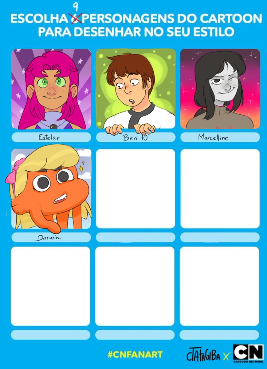 aquele negocinho do #SixFanarts (nesse caso 9 fanarts) da @CartoonBrasil os dois primeiros: Estelar e Ben 10
