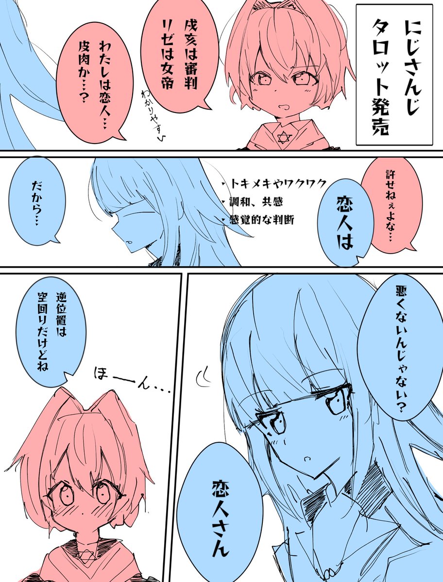 84 546 【妄想注意】にじさんじタロットのお話 漫画描くのって大変。 タロットの意味は調べたのですが、素人なので間違ってたらすみません… #絵ンジュ #ヘル絵スタ 23/01/30 22:07