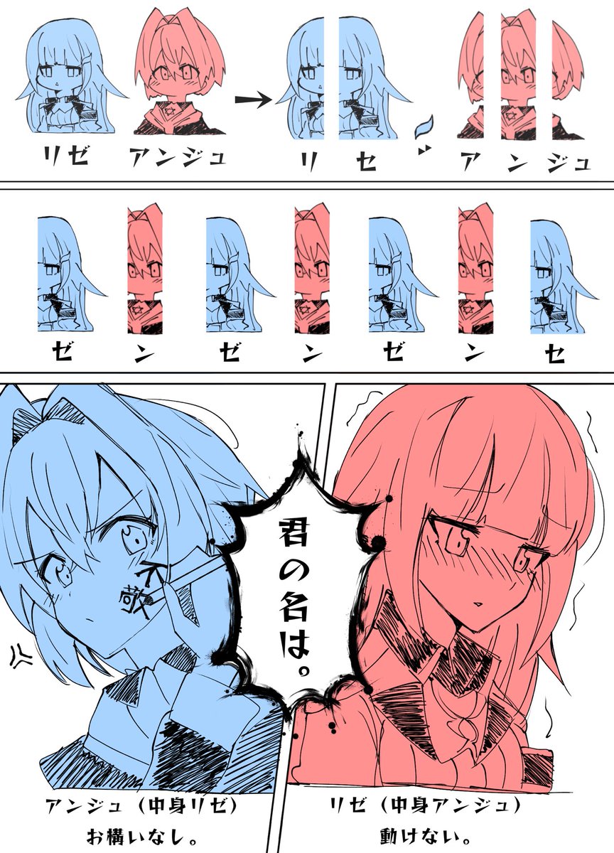 【妄想注意】入れ替わりのお話 ネタはちょっと古いけど、入れ替わり系好きなのよね。 #絵ンジュ #ヘル絵スタ