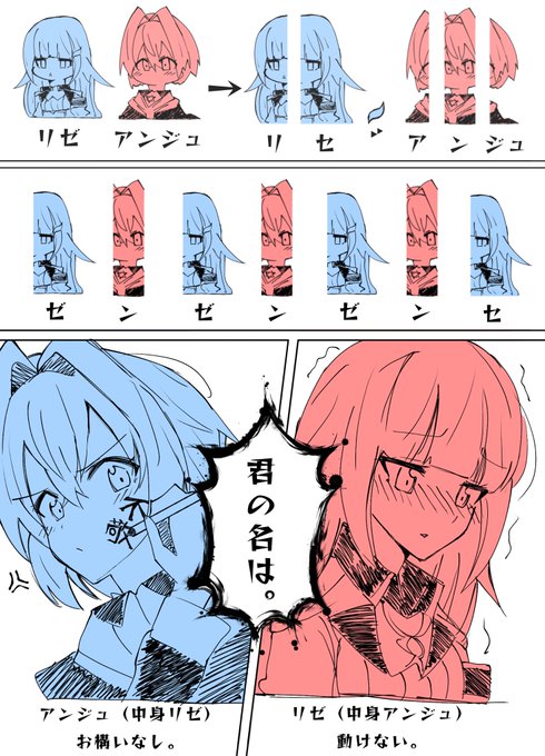 127 610 【妄想注意】入れ替わりのお話 ネタはちょっと古いけど、入れ替わり系好きなのよね。 #絵ンジュ #ヘル絵スタ 23/02/04 18:35