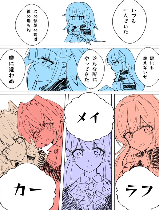 【妄想注意】ハッピーエンドをはじめからのお話 ラフメイカーの選出は独断、偏見、趣味。(誰か分かるかな?) リゼ様の魅力全開なので曲聴いてね。 #絵ンジュ #ヘル絵スタ