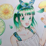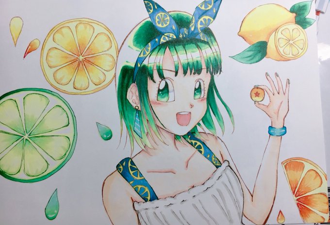 で、できました〜🙌✨✨ 誰が何を言おうともパンちゃんです笑😂 遊び心で夏らしい柑橘系の背景と髪を緑系統にしました☺️ そんでもって、タグに参加させていただきます🙇♀️ #この夏で描いた自慢のDB絵 #コピック #ドラゴンボール