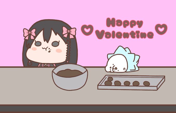 #プラムのボックス 🍫HappyValentine!🍫チョコ作り中につまみ食いするプラムさん描きました! 私事ですが今日は知り合いが去年のプラムさんのバレンタインっぽい統一の動画で紹介してたケーキポップくれるらしいです プラムさんにも感謝ですね🙏