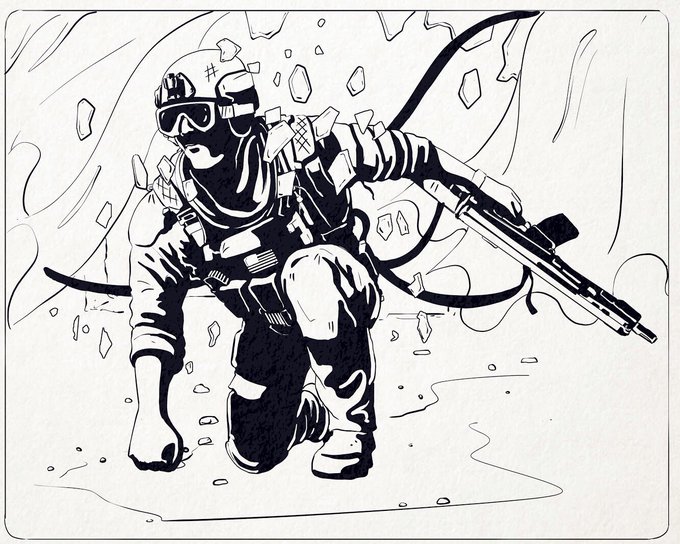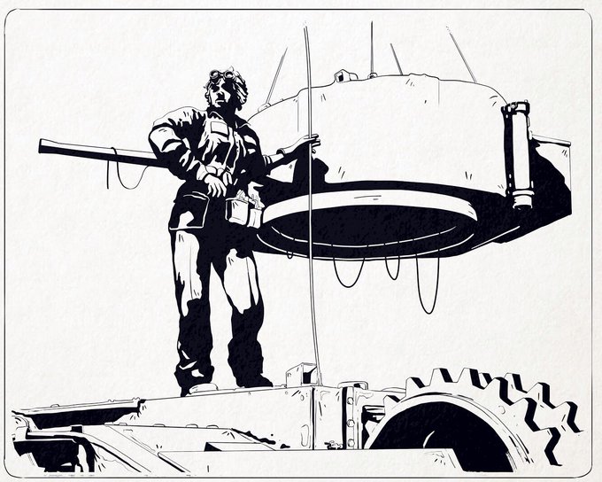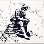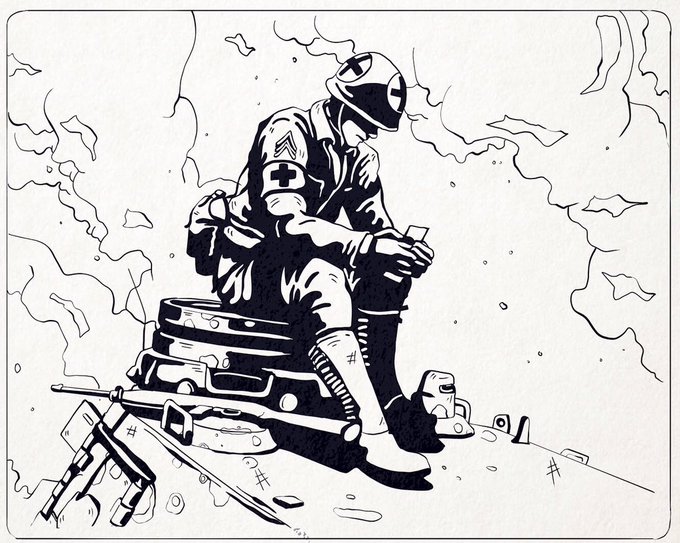 #inktoberday19 #inktober #inktober2019 Prompt word of the day 'Sling', drew a medic on top of a stricken tank turret enjoying a moment of pease. #illustration #art #artist #drawing #soldier #military
