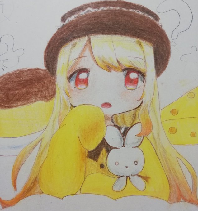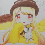 課題で描いたこてきゃちゃん🍮 #色鉛筆画 #イラスト #アナログイラスト