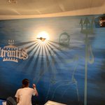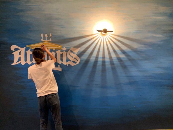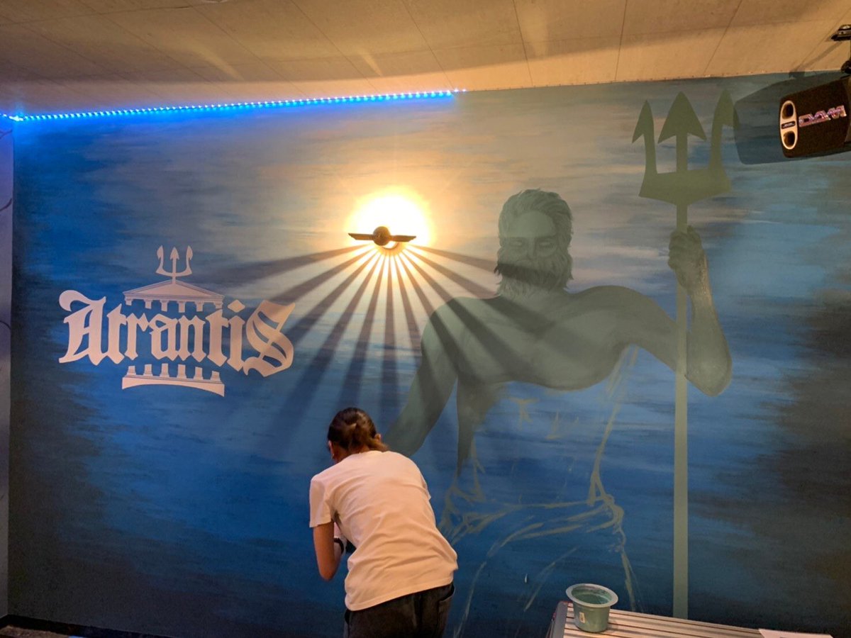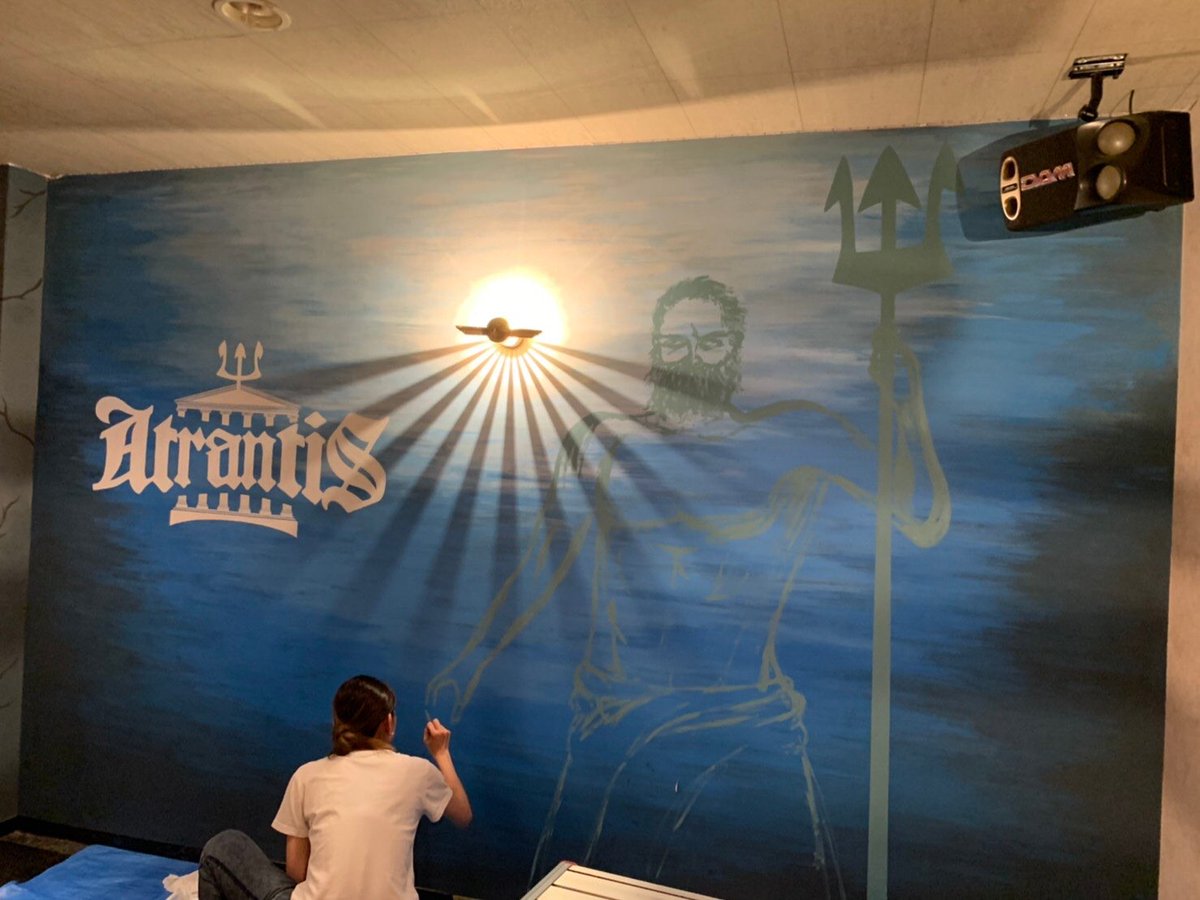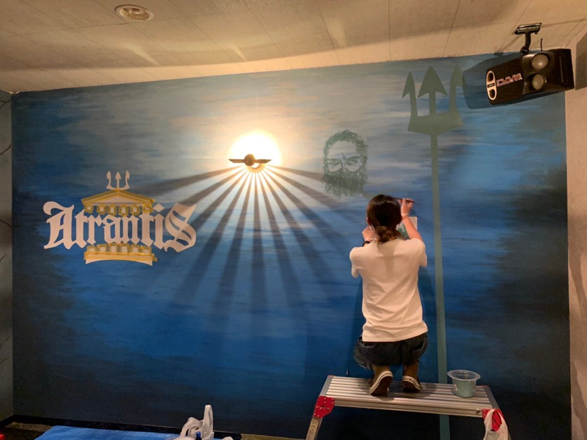 心斎橋にある、とあるバーの壁画。 1人で黙々と作業中の自分。 ※昨日完成して、依頼完了しました #絵 #壁画 #アナログ絵 #絵描きさんと繋がりたい #イラスト好きさんと繋がりたい #アナログ絵描きさんと繋がりたい