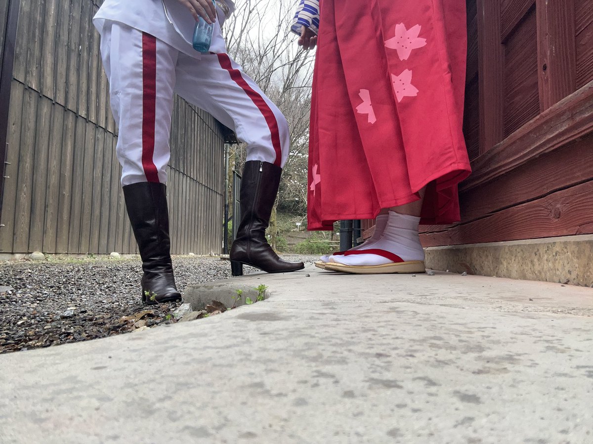 明日から本格的に仕事始まるので現実逃避も兼ねて #明治村コス の思い出載せちゃう🌸 1枚目:スマホを地面に置いて頑張って鴎芽感を出した 2枚目:鴎外さんから見た芽衣ちゃん