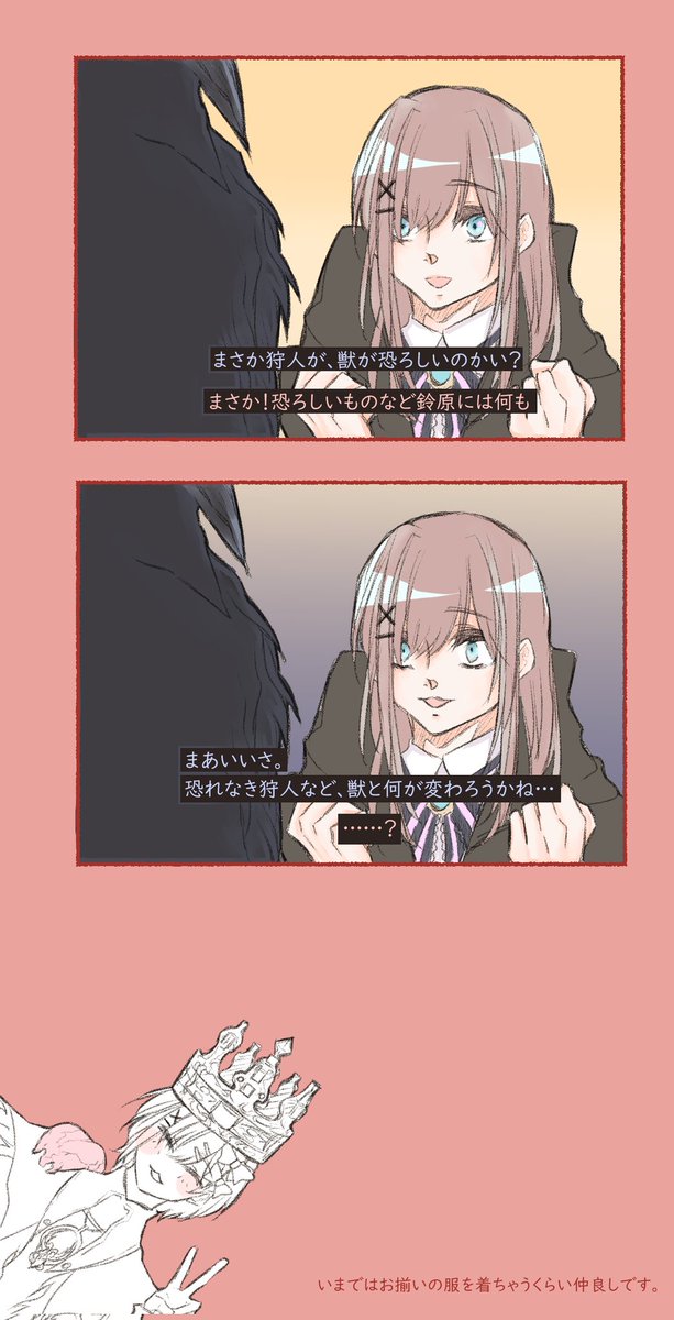 烏羽の狩人と鈴原可愛いよねって絵です #るるのアトリエ