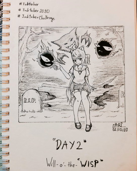 Day 2 - Wisp ------- As I said in my day 1, I'm trying to collab my oc with Pokemon, so for the theme "Wisp", I choose Ghastly and Haunter, because I think they will suit this topic best XD #Inktober #inktober2020 #inktober2020day2 #pokemon #ghastly