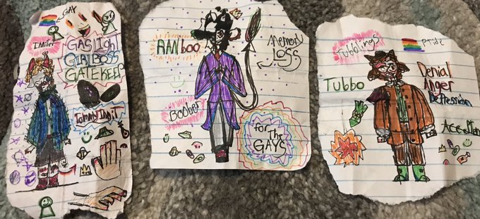 i got bored in class and only had colored pens . now i’m in love with pens (ignore how the brown is an whiteboard marker) #benchtriofanart #ranboofanart #tommyinnitfanart #tubbofanart