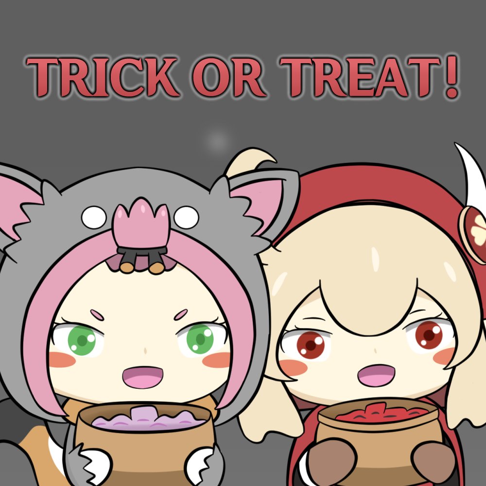 Happy Halloween! Trick or Treat! Give us something good to eat! #halloween2021 #genshinimpactfanart #genshinimpact #genshin #klee #Diona #CHIBI #halloween