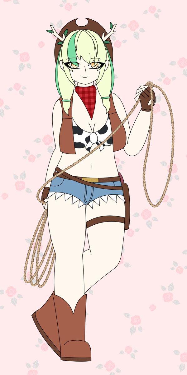 Wait, Cow Bikini? I thought you said Cowboy-kini! Either way, felt inspired to do a special Vtuber outfit swap, this time Ceres Fauna and CowgirlCowgirl. I love how well their designs match up between the Two tone hair and adorable horns. #FineFaunart #bessieart #Vtubers