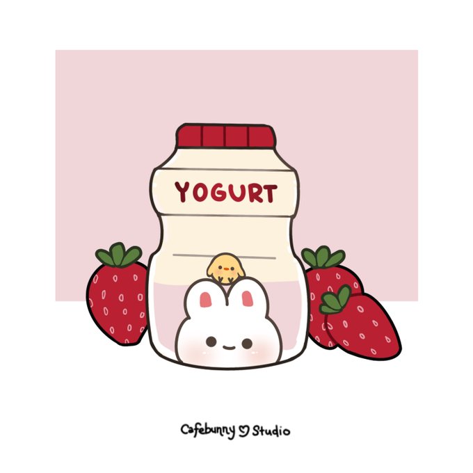 This time it is strawberry yogurt with Bunny and chickie friend! Part 1/3 yogurt series. Did you have a favorite yogurt drink? #ArtistOnTwitter #cuteart #procreate #kawaiiart #digitalart #bunny #cutefoodart