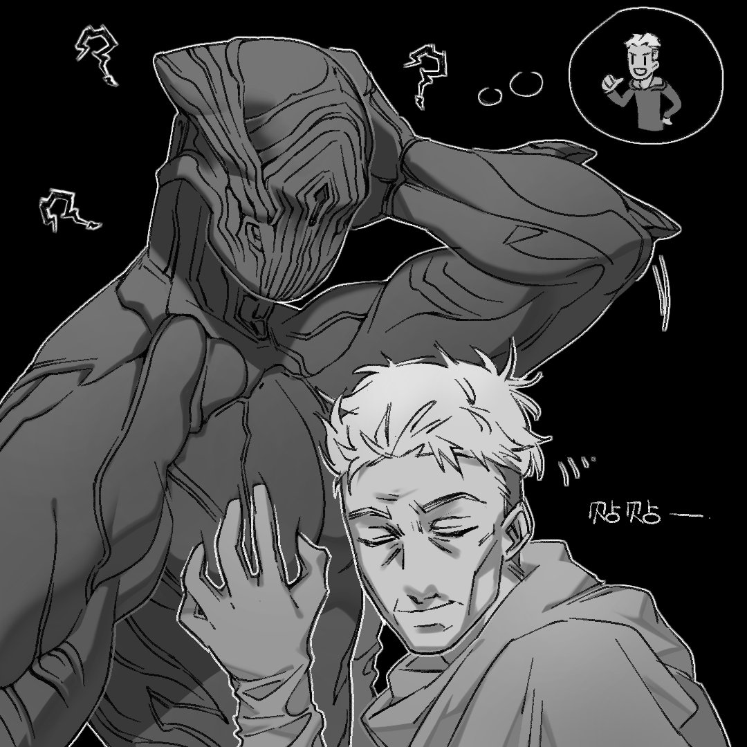 自家漂泊者和小黑贴贴—— #warframe #warframefanart