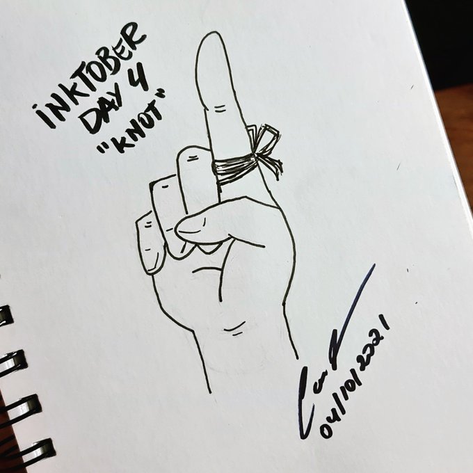 Inktober Dia 4 - Knot Quem nunca fez um nó com uma linha no dedo para n se esquecer de algo? Hahahah (O de hoje ficou bem simples, mas o de amanhã vou compensar, prometo!) #inktober2021 #Inktober