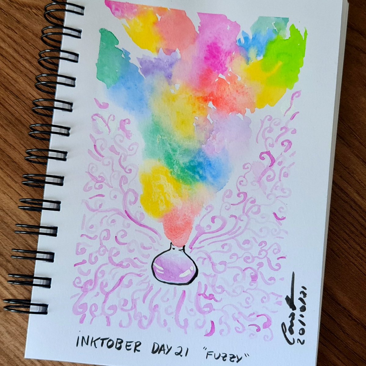 Inktober Dia 21 - Fuzzy - Depois percebi que talvez eu tenha confundido o conceito hahahaha mas curti a imagem! #drawing #inktober2021 #desenho #inktober #aquarela #watercolor