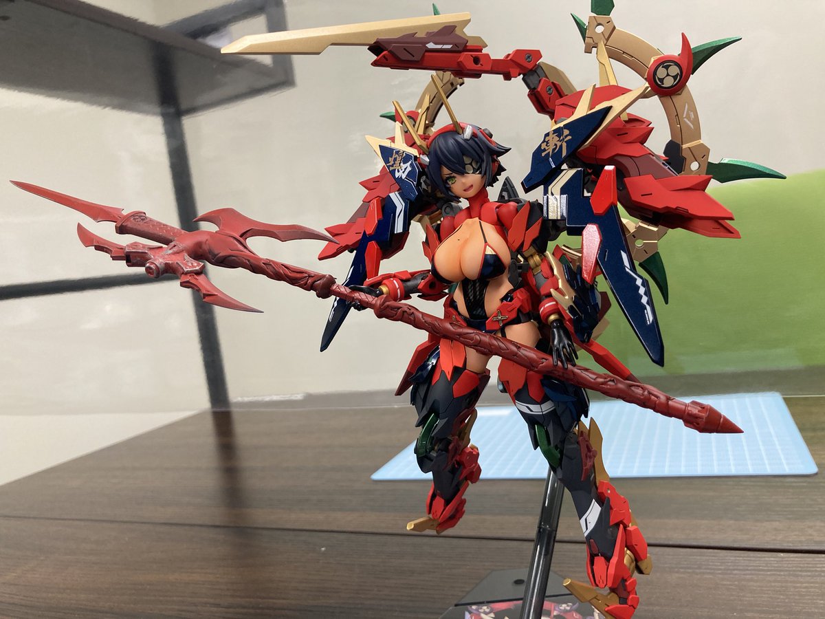 1 13 余剰パーツやらなんやらから生まれた 「朱羅 玉藻ノ前 蒼鬼」完成しました。 大型武器はメガミの嗜みや! 姉との合わせも良きです #メガミデバイス 21/11/12 19:03